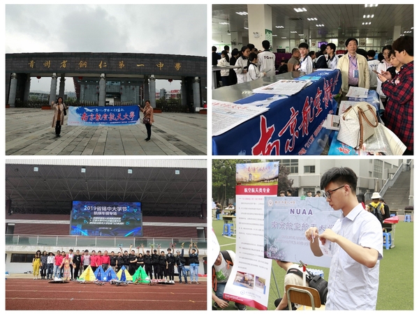 4月至今,学校先后组织多场赴省内外中学走访和招生宣传活动。省外,赴四川、浙江、贵州、湖南等地开展十余场进中学交流和宣讲;省内,深入走访南通、常州、无锡等地近二十所优秀生源基地中学,通过座谈交流、送讲座、航模表演、艺术演出等多种形式的交流活动,加强与中学的沟通,夯实合作基础,持续扩大学校影响,吸引优秀学子关注和报考南航,为即将到来的招生宣传高峰营造良好氛围。