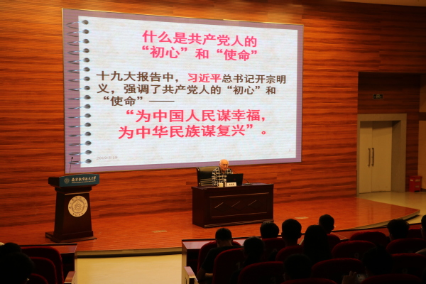 朱剑英从习近平总书记在十九大报告中指出的共产党人的初心为切入点,从“科技强则国强、教育强则国强、青年强则国强”三个维度出发,诠释了当代青年的时代坐标与历史使命。他回顾了自1840年以来,旧中国饱受西方列强侵略、任人宰割的半殖民半封建社会历史,以大量的案例与生动的故事告诉同学们落后就要挨打的历史教训。他认为,“综合国力的落后才会招致挨打,而从长远看,最终决定综合国力的因素是人才和教育(特别是人才的远见卓识的战略思想和勇于创新的革命行动)。”他援引毛泽东同志的“以妥协求和平,则和平亡”的名言,激励大家要奋发图强,提升我国科技发展水平,为中国梦奠定更厚实的科技支撑。