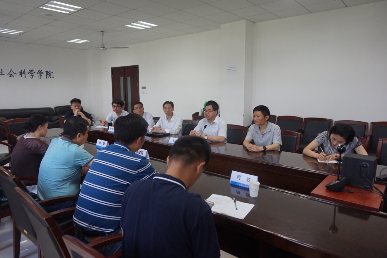 5月24日,南京市秦淮区人民法院专委方建国、民二庭庭长王辉宇、副庭长李璇、法官助理何牧一行四人访问人文学院并展开座谈。人文学院院长王建文教授主持座谈,学院党委书记刘虎、法律系黄建军副教授、王炳副教授、李宗辉副研究员、洪骥博士、熊敬博士、于焕博士参加座谈。