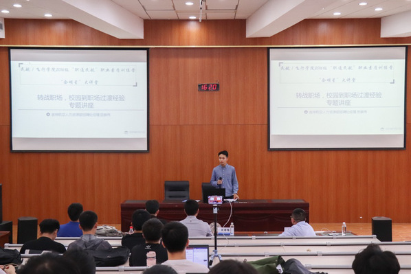 5月23日下午,民航学院2016级开展了“职通民航”职业素质培训营中“企明星”大讲堂系列活动。本次活动邀请了吉祥航空人力资源部招聘组经理田崇伟先生,与我校校友吉祥航空运力网络部的孔彪先生,为同学们开展主题为“转战职场,校园到职场过渡经验”的专题讲座,从如何做好职业规划、面试技巧与时间管理三个方面详细阐述。