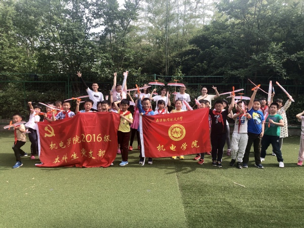 为更好地发挥党员的先锋模范作用,传递航空报国理想信念,使党员队伍在学习实践中求索真知,机电学院2016级本科生党支部于5月20日和24日来到南航大附小(瑞金北村小学)开展实践育人素质拓展活动。本次活动由机电学院2016级本科生党支部与瑞金北村小学(南航大附小)共同举办,活动分三个子项目,队列训练、科技制作竞赛和航空知识课堂。