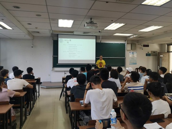 辅导员刘盛首先向大家介绍了到场的两位分享人,他们是今年考研至中国科学技术大学本年度大学生成就奖得主,学院2015级学生罗润彬和本科结束后将在华为工作的2015级学生杨东阳。