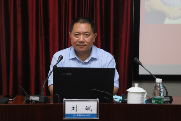 5月24日, 我校召开干部培训会,南京市委宣传部部务委员、网信办专职副主任刘斌应邀作《高校意识形态领域面临的风险挑战及对策建议》专题辅导报告。校党委常委、宣传部部长王晖主持会议。