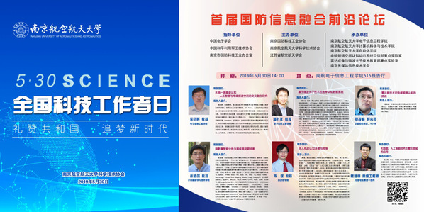 本次论坛由中国电子学会、中国和平利用军工技术协会、南京市国防科技工业办公室共同指导,由南京国防科技工业协会、南京航空航天大学科学技术协会、江苏省航空航天学会共同主办,南京航空航天大学电子信息工程学院、计算机科学与技术学院、自动化学院等单位共同承办,本次论坛的主题是电磁频谱空间认知动态系统的前沿动态、研究思路和发展方向。