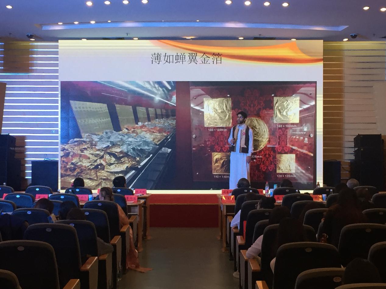 本届的演讲主题是“我与非物质文化遗产的故事”,我校留学生唐华的演讲题目是《我最喜爱的南京金箔》,他用流利的中文讲述了自己在牛首山与南京金箔结缘的故事。他说,在利比亚,也有很多黄金的用法,他觉得世界各个民族的文化在某些程度上是有相似之处的,文化艺术不分国界,我们需要用包容开放的眼光去欣赏,去接纳,这样就能够收获许多的美好。