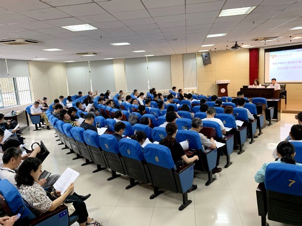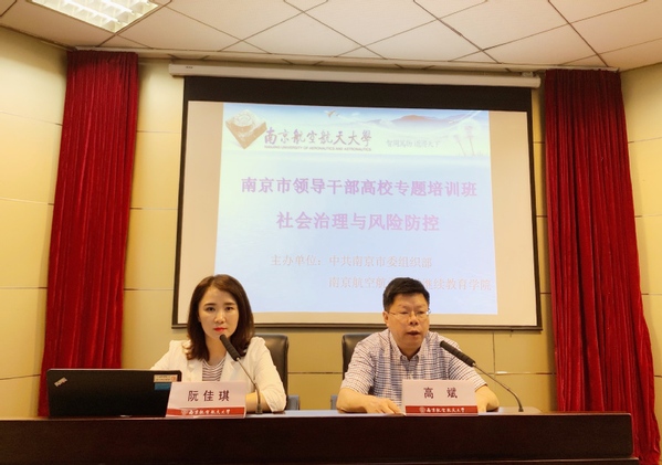 5月29日上午来自南京市各行各业的120多名处级领导干部齐聚南京航空航天大学,参加南京市领导干部高校专题培训----《社会治理与风险防控》。开班典礼在明故宫校区12号楼报告厅举行。继续教育学院党委书记高斌致辞,培训部主任阮佳琪主持开班仪式。