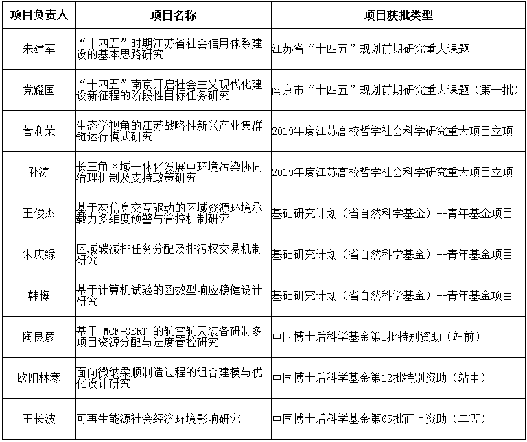 近日,江苏省教育厅、江苏省科技厅、江苏省发改委、南京市发改委、中国博士后科学基金会陆续公布(公示)了部分科研项目的入选名单,经济与管理学院多名老师的项目获批。