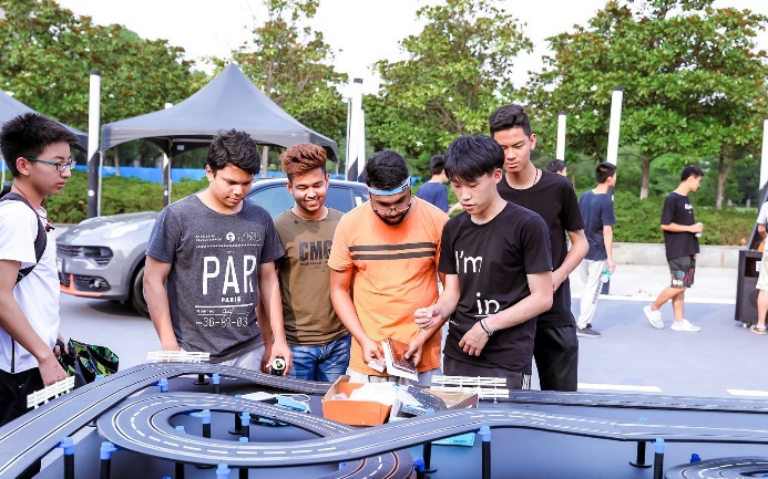 随着小剧场内赛事的精彩启动,艺体广场上的“奇妙游园会”同时也在火热进行。意念赛车、气泡屋等体验区吸引了大量同学参与。炎热的天气丝毫没能消减大家对项目的热情,来自不同学院的同学纷纷进行体验活动。活动持续了近7个小时。在启动仪式和项目互动中,广大同学也更深切地了解了了大赛的比赛要求,感受到民族汽车工业的崛起之势,吉利人的家国情怀!