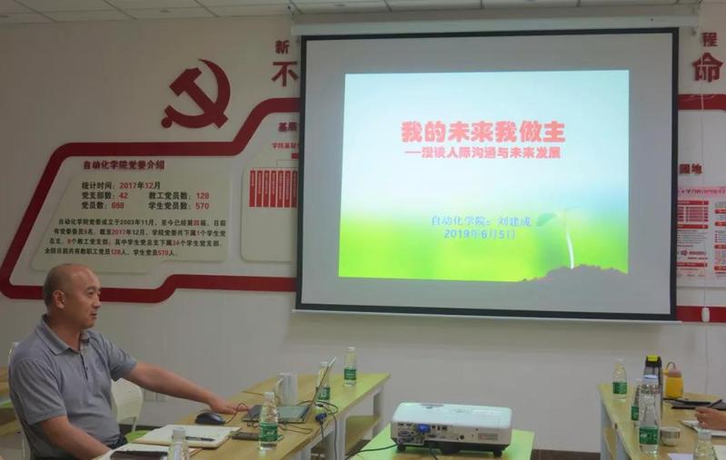 6月5日下午,自动化学院“紫冬话访”学术系列活动之"我的未来我做主" ——研究生领航工程暨新思想公开课在自动化学院1号楼409党员活动室成功举办。本次学术沙龙邀请到自动化学院党委书记刘建成,围绕“人际沟通与未来发展”主题,给同学们呈现了一场轻松有趣但意义深刻的新思想公开课。