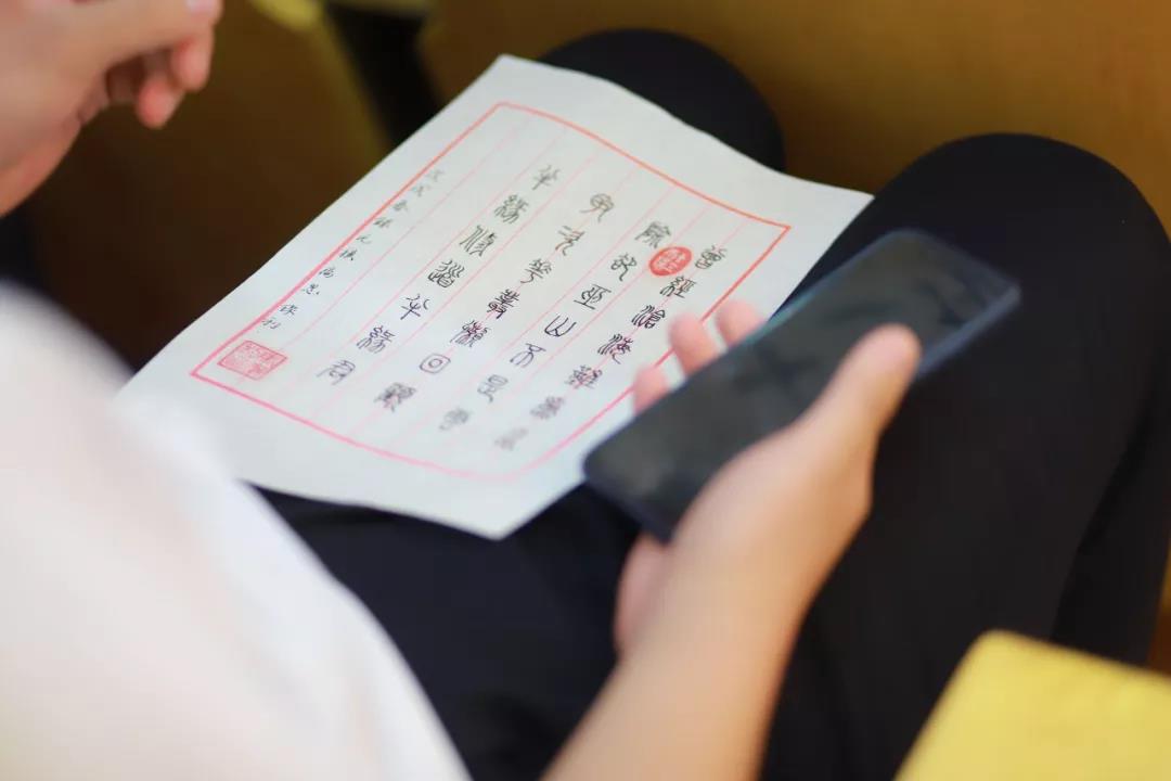 最后的互动环节,马保利机长与现场同学进行诗词知识的交流,并将自己亲手写的小篆作品赠予同学。“玲珑骰子安红豆,入骨相思知不知”,机长笑称这是他写给母校的情书。