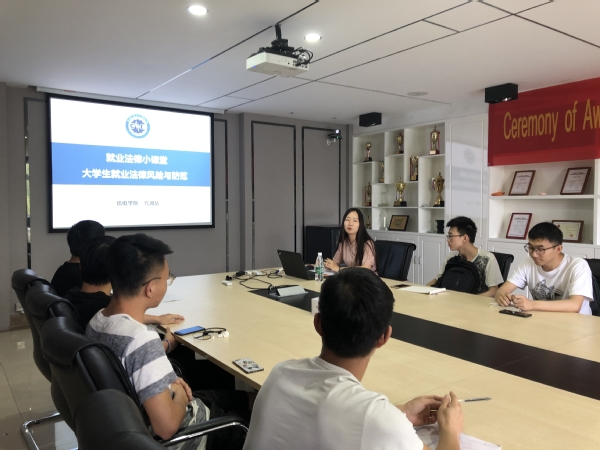 6月12日下午,机电学院“积淀青春,职掌未来”职业素质训练营之就业法律小课堂在明故宫校区A15号楼341会议室进行。本次小课堂由学院辅导员代澔丛主讲,在2020届准毕业即将迈入实习、就业阶段前,就“大学生就业过程中的风险与防范”内容,开展了一次交流课堂。机电学院2016级本科生辅导员康怡宁及20余名暑假即将迈入实习岗位的准毕业生共同参与了活动。