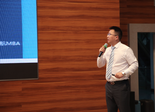 随后,学生代表朱娟娟发言,作为南航校友,朱娟娟一直憧憬着重回南航校园的一天,终于,在十五年后的今天实现了这个梦想。朱娟娟分享了自己在工作生活中的经验和人生感悟,希望同学们把握当下,助力人生,敏于思考,触类旁通,都能成为MBA领航人。