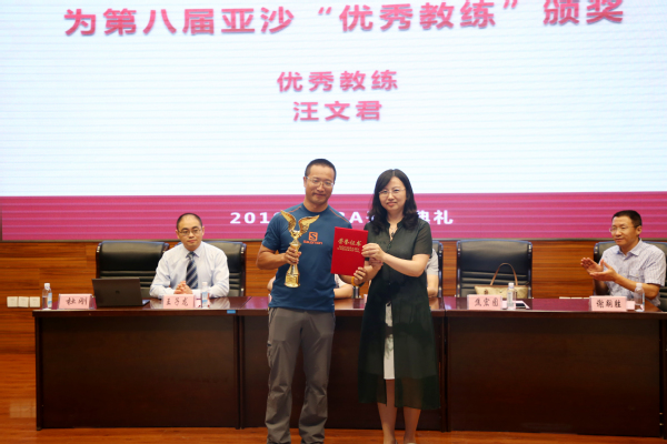 王子龙宣读亚太地区商学院沙漠挑战赛获奖人员名单,周德群、焦宏图为优秀带队老师、优秀教练和优秀队员颁奖。