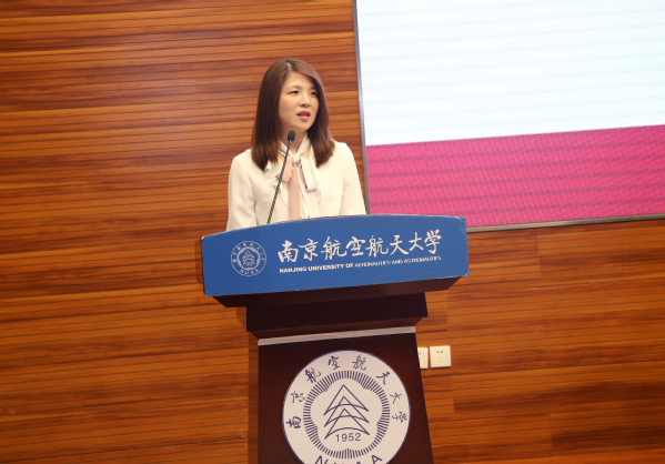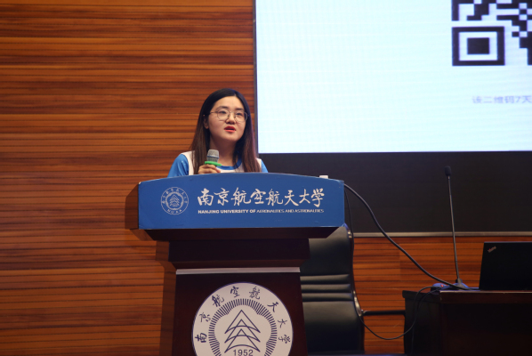 学生代表章欢欢发言,她回首自己的备考经历,章欢欢畅言自己对南航的热爱,同时倡导各位同学追求真知、对知识存敬畏之心;遵守纪律按章守规;拼搏奋斗突破自己,最后献上自己对南航的美好祝福,祝愿南航永立潮头。