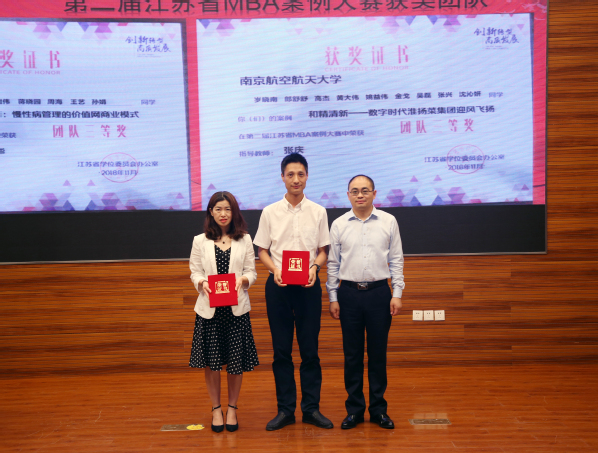 祝少琪宣读第二届江苏省MBA案例大赛获奖团队、第二届中国MBA演说大赛最佳风采奖,王子龙为获奖同学们颁发荣誉证书并合影留念。