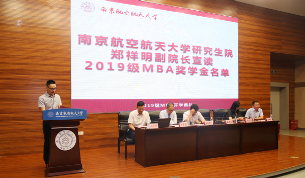 6月15日上午,我校MBA2019级新生开学典礼在南航江宁校区西区一号楼四楼报告厅举行。