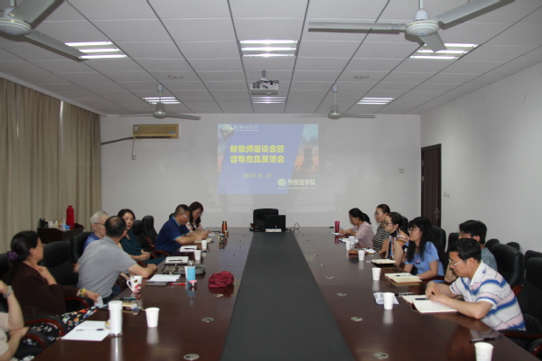 6月18日下午,外国语学院在322会议室召开新教师座谈暨督导意见反馈会,特邀联系我院的校教学督导组组长云乃彰教授参加,学院党委书记左彤云、副院长刘长江、学院督导组组长谢小苑、督导组成员、各系部主任、近三年新进教师等参加了会议。