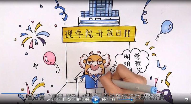 一段充满青春回忆的原创手绘视频,带领全场的“小锦鲤”们一起回忆了大学四年的点点滴滴。短短的一分钟时间,视频里的一支画笔和一幅幅绚烂的涂鸦,带领大家一起将大学从专业学习到科创竞赛,从日常学习生活到社会实习实践,从同窗友情到老师恩情,从青涩入校到展望未来,将思念理学生涯演绎的淋漓尽致。