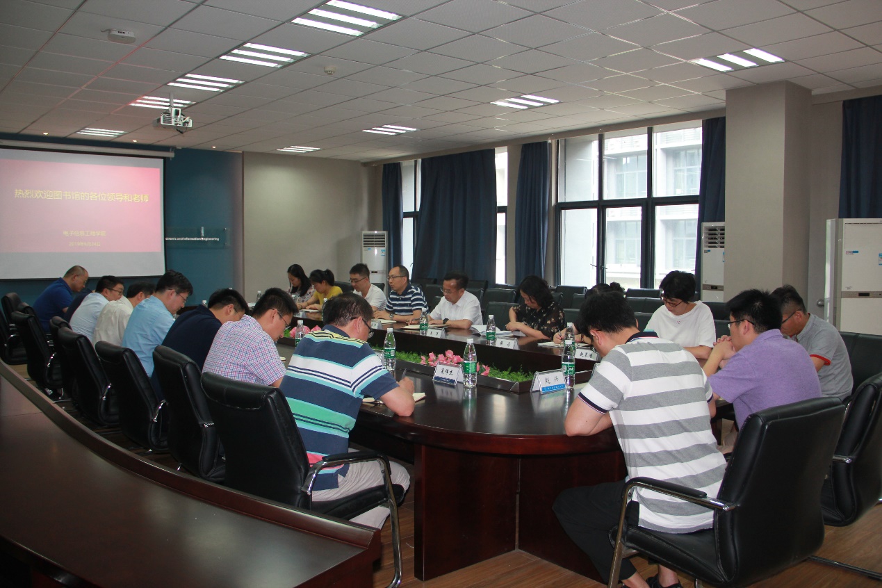 6月24日上午,学校图书馆馆长王成华一行莅临电子信息工程学院调研指导工作,图书馆副馆长单冠贤、工信智库评价中心副主任秦萍、副研究馆员李小涛及资源建设部、服务部、学科馆员负责同志等参加了调研。学院党委书记聂东林、常务副院长吴启晖和全体领导班子成员、系主任及教师代表参加调研座谈。