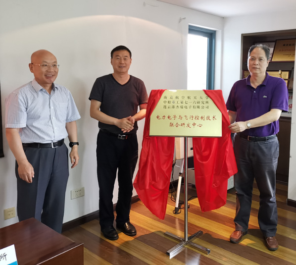 近日,由南京航空航天大学(以下简称“南航”)、中船重工第七一六研究所(以下简称“七一六所”)、连云港杰瑞电子有限公司(以下简称“杰瑞电子”)联合共建的“电力电子与飞行控制技术联合研发中心”在南航成立并举行揭牌仪式。副校长许希武,七一六所副所长万勤、徐大林,杰瑞电子副总经理项俊平参加了本次仪式。揭牌仪式由学校科研院副院长、国防科研处处长毛军逵主持。