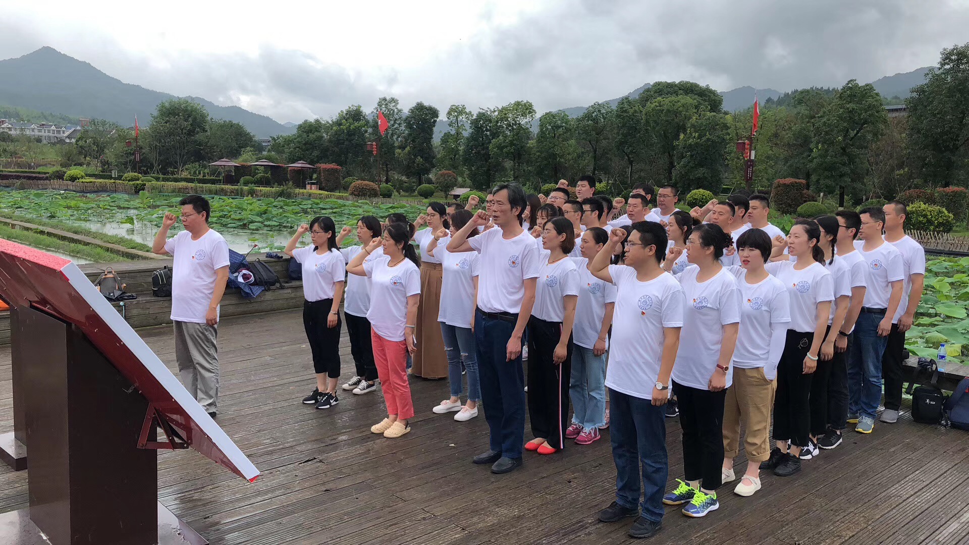 在博物馆内,全体党员认真聆听了由中央苏区闽西博物馆的邓泽村教授为大家带的生动党课,详细地了解到了“古田会议”的历史背景和时代意。仲夏时节,山峦叠翠,笔架山下的古田会议会址古朴庄重,“古田会议永放光芒”8个大字在青山绿树掩映下显得尤为夺目。全体党员面向鲜红的中国共产党党旗,整齐列队,高举右拳,重温入党誓词,铮铮誓言响彻古田会议旧址上空,宣示着全体同志坚定的政治信仰信念和初心永不忘、使命永担当的坚定决心。