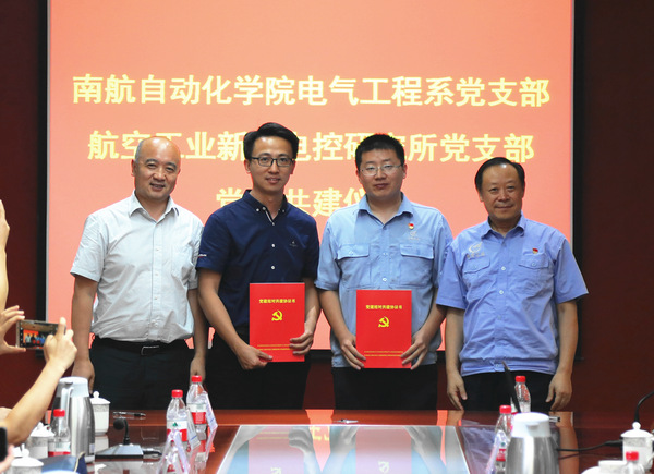 电气工程系党支部书记魏佳丹就电气党支部的科研合作、党建工作进行了汇报,新航集团电控研究所党支部书记谢学坤就目前研究所党支部的人员组成以及党建规划和发展情况进行了汇报。共建仪式上,在刘建成和高海军的见证下,魏佳丹与谢学坤代表双方党支部签订党建结对项目协议书。