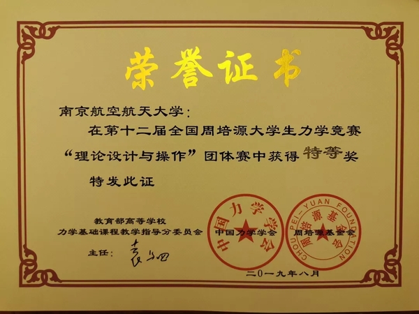 近年来,在教务处大力支持下,航空学院基础力学教学团队坚持立德树人,大力开展力学教学改革,不断加强学生创新精神与实践能力的塑造,取得国际力学竞赛特等奖等佳绩。此次获第十二届全国周培源大学生力学竞赛“理论设计与操作”团体赛特等奖,充分体现了我校在基础力学人才培养方面的实力,彰显了学校在力学“双一流”学科的优势,极大地提高了南航的学术声誉和知名度。
