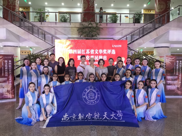 本届舞蹈专场评比中,各参评剧目均来自省内各专业艺术院团、艺术院校及舞蹈专业,竞争激烈,佳作迭出。《逐梦云天外》作为唯一一个工科院校选送、表演者来自学校各专业的作品,我校学生准备充分,毫不怯场。比赛中,全体演员用整齐划一的舞姿、自信坚定的表演体现了中国航空航天科研人员的精神世界,展示了南航学子的当代风采,征服了现场的评委和观众,获得大家的一致好评!