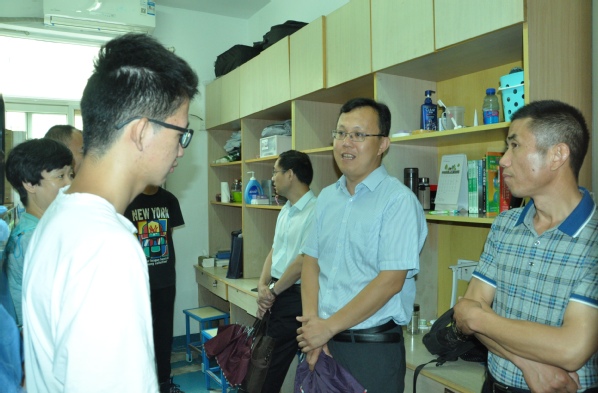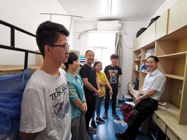 9月2日上午航天学院党委书记季海群、常务副院长陈金宝、院党委副书记庞小燕、航天系统工程系主任王寅、航天光电信息系李丹、辅导员冯果果共同来到慧园四栋看望航天学院的新生和家长。在新生寝室,学院领导和老师们与家长和学生们亲切交谈,热切询问新生对住宿条件是否满意,帮助新生解决生活困难,并鼓励新生努力学习,投身航天事业,期待同学们能够培养航天精神与情怀,肩负起建设航天强国的历史担当。
