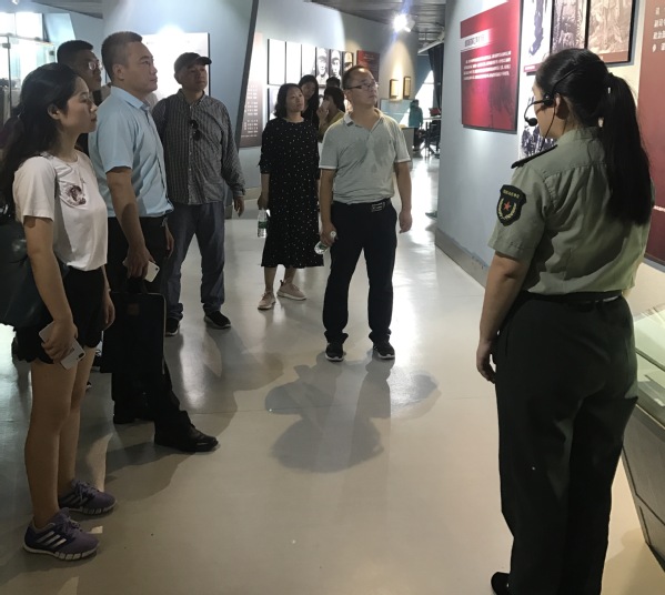 首先,参观新四军江南指挥部纪念馆。党员老师们逐一参观了陈毅元帅诗词将军法书碑廊、新四军江南指挥部司令部旧址、毛泽东像章陈列馆、新四军江南指挥部展览馆和纪念广场等地,重温了党在此建立抗日根据地“威震江南、功在民族”的光荣历史,充分感受了新四军江南部队在苏南抗日根据地的战斗历程。