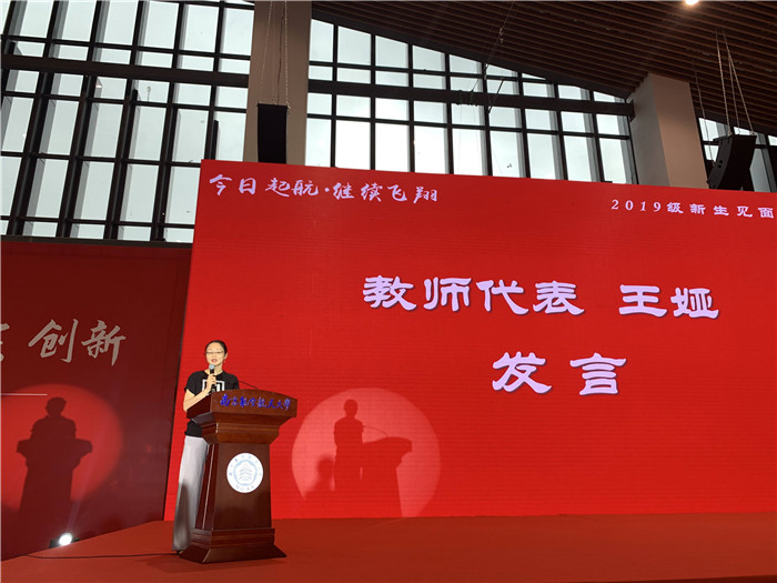 应用外语系王娅作为教师代表,以珍惜当下、珍惜他人、珍惜自己为切入点,对新同学提出了大学阶段的建议和期望。