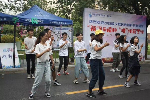 在学院本科生“1+4”导师的工作基础上,今年学院专门为2019级新生配备了“1+4”学长学姐团,挑选出57位高年级优秀学长学姐,每人对接一个新生宿舍,从熟悉南航、专业导航、时间管理等方面为新生答疑解惑。学长学姐们现场指导新生填写了“大一梦想”卡,并投入“时间胶囊”,等待学年结束重启胶囊,看看梦想是否照进现实。今后,学长学姐团会每周进一次对应新生的宿舍、每月代领新生做一次学习分享,学院每学期会评选一次“我最喜爱的学长学姐”。希望帮助新生尽快适应大学生活,尽早做好大学生涯规划。迎新现场,学长学姐团代表们表演的快闪舞蹈“带你去旅行”,也吸引了新生和路人驻足观看,现场气氛青春洋溢。