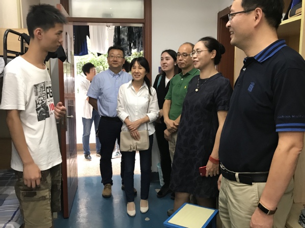 9月3日下午,理学院领导班子由党委书记余春玲、常务副院长王春武带队来到新生宿舍,看望新生和家长。在新生们自我介绍后,余春玲亲切的对新生说,学院已经为同学们的学习生活准备好了所有硬件和软件,希望同学们在大学这个更广阔的舞台上有更大更好的发展,同时,希望家长们平时多与学生和辅导员交流,继续关注孩子的成长。新生们自发鼓掌表示对学院和老师的感谢。