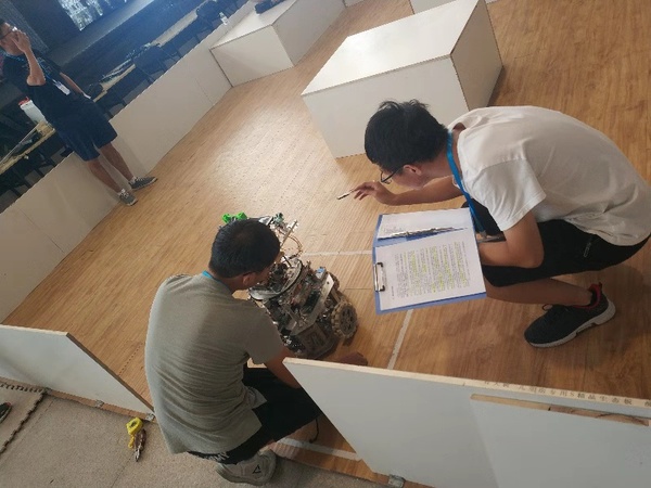 在医疗机器人-送药巡诊机器人项目中,由机电学院飞行器制造工程专业的郑冠冠、杨钰隆等同学设计的医疗机器人,具备医患实时远程查房问诊、生命体征信息测量、基于二维码技术的取送药、智能路径规划等功能。该机器人基于stm32开发板使用RT-Thread实时操作系统,可以很方便地实现多线程,极大地简化了任务逻辑。在定位导航方面,该机器人利用高精度Z轴角度传感器和编码器的反馈值自主开发“简易版惯性导航”。在路径规划方面,则使用化曲为直的思想,既降低了设计难度,也提高了控制精度,同时提高了速度。该机器人凭借其出色的稳定性、精准的扫描识别、灵活的路线规划方式,在两轮比赛中均取得满分成绩,获得了医疗机器人-送药巡诊机器人亚军的优异成绩。