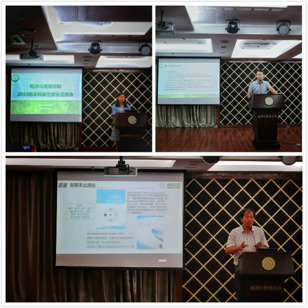 9月3日下午,我校经济与管理学院2019级本科新生家长会在A0305教室召开。学院为各位新生家长播放了学校、学院的宣传片,宣传片展现了南航人矢志蓝天的情怀与经管人拼搏奋斗的品质。学院本科生教学副院长邓晶从专业学科、师资力量、资源优势和专业分流等方面向各位新生家长进行了详细的介绍,使新生家长对经管学院的综合实力和本科生教学计划有了充分的了解。