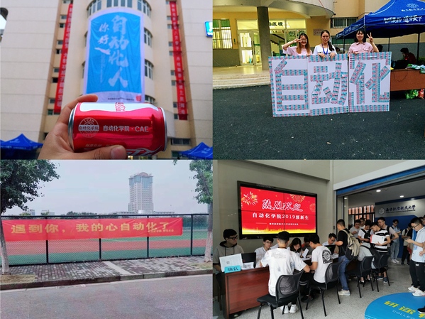 自动化学院精心营造使2019级新生富有归属感和自豪感的迎新环境。用所有本科新生名字设计、拼接而成的“自动化人”,象征着青年学子团结拼搏、奋勇向前;为每位同学定制专属卡贴,卡贴上“初心”二字由新生的名字拼成,勉励新的自动化人大学四年不负韶华、不忘初心。卡贴以组合在展板上“自动化”的方式展现给新生,让新生找到专属幸福感和归属感。在自动化学院1号楼大厅,学院也为研究生搭建了一站式报到注册工作台,以保证报到工作井然有序、方便快捷。