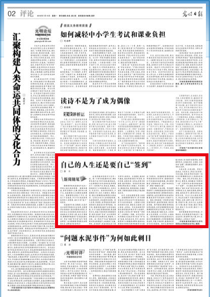 近日,《光明日报》刊发我校马克思主义学院党总支书记徐川教授的文章《自己的人生还是要自己“签到”》,现将全文刊发如下: