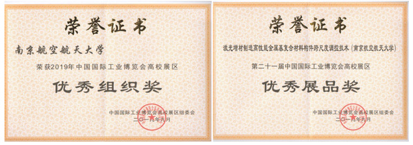 我校紧密围绕创新驱动发展战略要求,充分结合大会主题,发挥学校科研特色,精心遴选项目特装展出,展示了学校在航空航天、智能制造、电子信息、节能环保、新材料等领域的17项先进科技成果,再一次取得了喜人成绩。其中,我校“激光增材制造高性能金属基复合材料构件跨尺度调控技术”项目获得高校展区优秀展品奖,同时,学校也获得工博会高校展区组委会颁发的2019年中国国际工业博览会高校展区优秀组织奖、先进个人奖,获奖数名列参展高校前列。