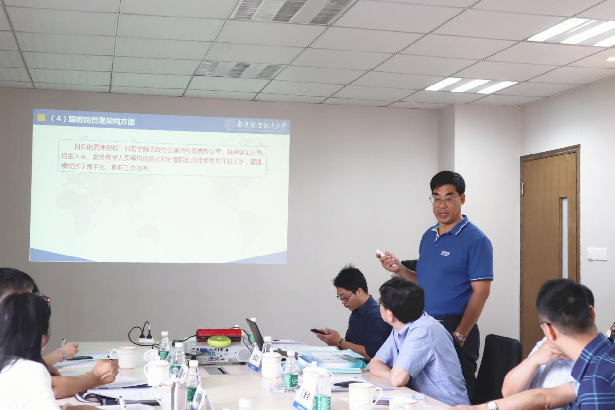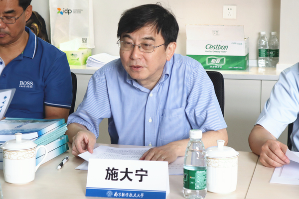 工作汇报会上,施大宁首先介绍了学校的基本情况,发展特色以及来华留学教育工作的现状与成绩等,他对专家们这次到南航的调研表示热烈欢迎,并表示今后要继续广泛开展国际交流与合作,积极发展来华留学教育,进一步打造“服务航空航天民航、服务江苏,面向全国、面向世界”的开放型办学新格局,深化“留学南航”的品牌内涵。