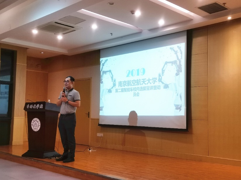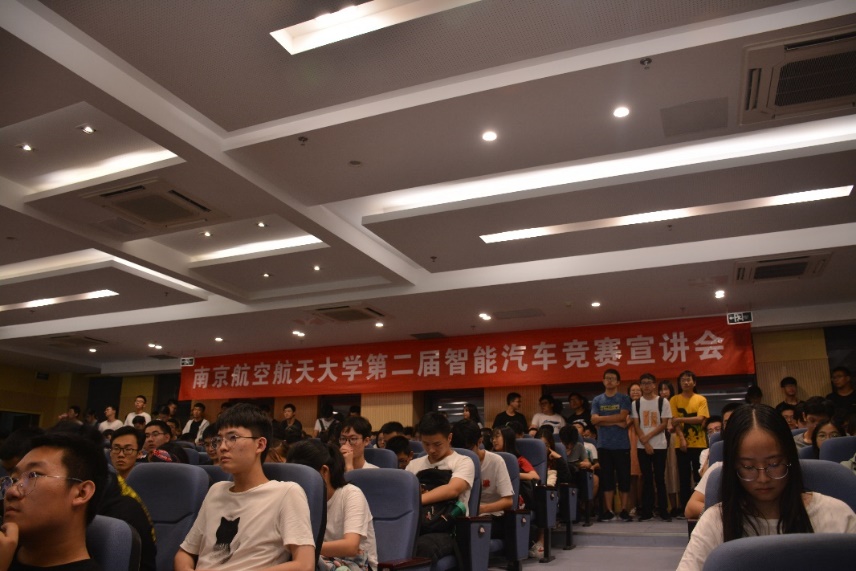 9月25日晚,由自动化学院承办的南航第二届智能车竞赛校内选拔赛宣讲会在自动化学院1号楼511报告厅举行。自动化学院党委副书记张跃、智能车竞赛指导教师兼电气工程系支部书记魏佳丹、团委书记刘斐文老师出席了本次宣讲会,上届参赛学生代表王艺威、廖禄伟、吴鑫健及来自一百三十多支参赛队伍的共计三百余名学生亦参加了此次活动。