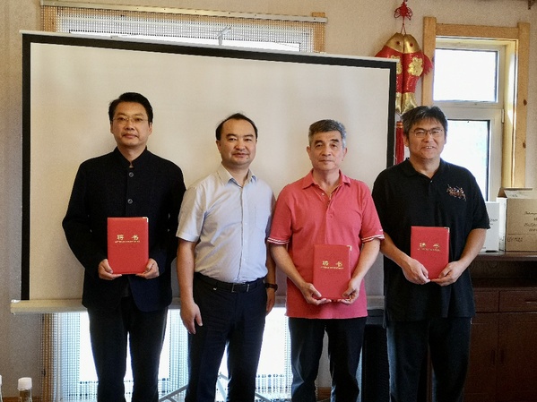 陶勇向新一届沈阳校友会名誉会长、会长与秘书长颁发聘书。