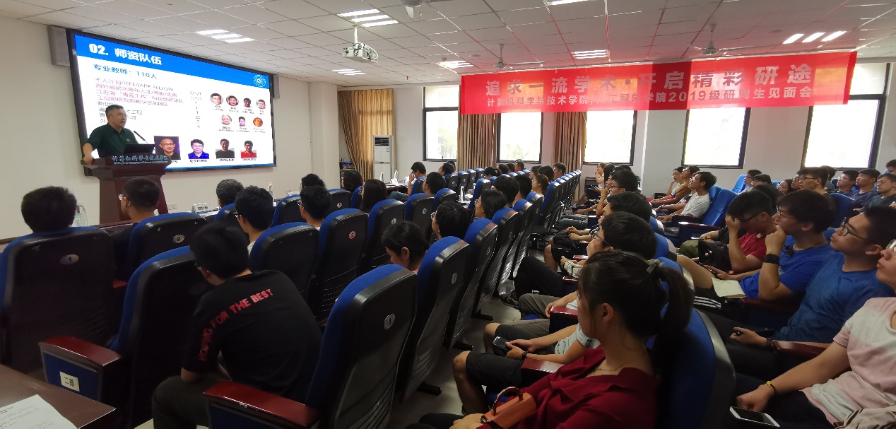 9月29日中午,计算机科学与技术学院/人工智能学院“追求一流学术·开启精彩研途” 2019级研究生见面会在学院113报告厅举行。学院党委书记刘健荣、院长陈兵、党委副书记管祎、分管科研副院长张道强、分管研究生教学副院长燕雪峰、分管本科教学副院长赵蕴龙、系所负责人代表、导师代表、2019级研究生教务员、辅导员、2019级研究生参加了见面会。