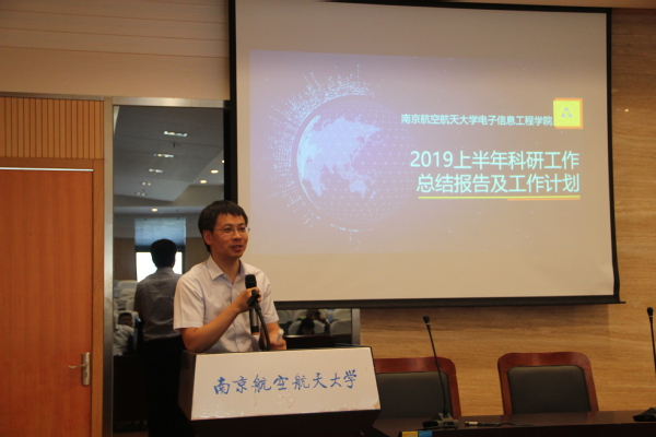 副院长潘时龙围绕组织谋划、科研项目申报与立项、科研成果与专利、学术交流等方面对2019上半年科研工作做了详细的梳理与总结,例举了学院在重大科研成果产出、重大科研项目争取等工作上的重大突破,同时也分析了存在的不足与改进之处。