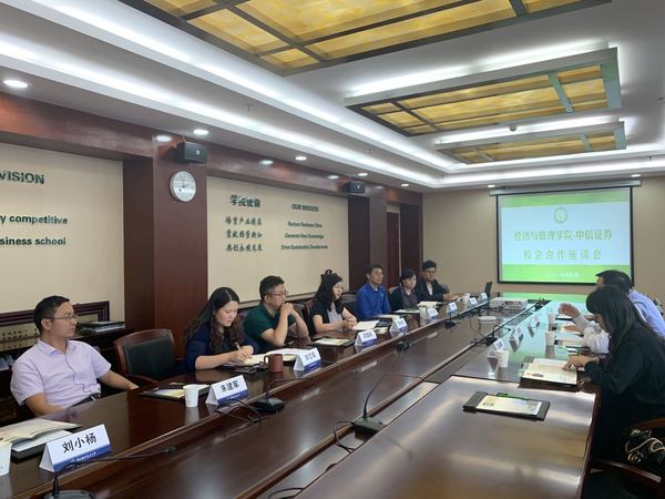 9月26日,中信证券江苏省分公司总经理王恩新一行来到经管学院洽谈校企合作,公司人事部经理王裕娟、营业部经理李冬以及经管学院院长周德群、院党委书记焦宏图、教务处副处长朱建军、副院长邓晶、院党委副书记涂志宏、金融专业负责人段进东、经济系党支部书记徐菱涓、辅导员代表等参加了本次洽谈会。