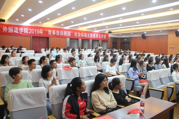9月29日,外国语学院2019年“青春告白祖国”社会实践主题素养公开课在学院楼国际会议中心举办。外国语学院党委副书记梁薇、学院团委书记关天茹、校团委老师吕晶淼、辅导员盛嘉贤及全体2019级本科生参加了此次公开课。