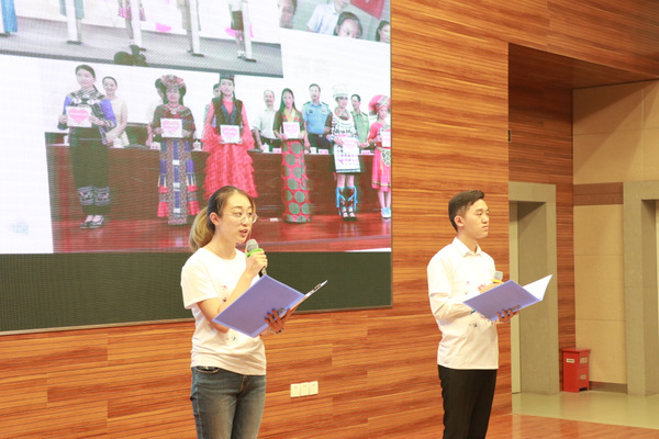 领略过专业实践团队的风采,伴随着“筑梦黔行”团队的歌声,济天下-志愿服务-心系家国篇章的展示环节到来了。“关爱自闭症儿童”团队结合自身的实践经历,上演了一场感人至深的情景剧表演。一遍遍耐心的教导、一次次重播的动画片……看似简单的剧情背后,是他们的辛勤的付出与无私的奉献。“关爱城市的蒲公英”团队播放了实践期间拍摄的视频,记叙了志愿者与孩子们相处的点点滴滴。“春蕾向阳开,蓝天筑梦行”团队带来的朗诵朴实温暖,感人至深。