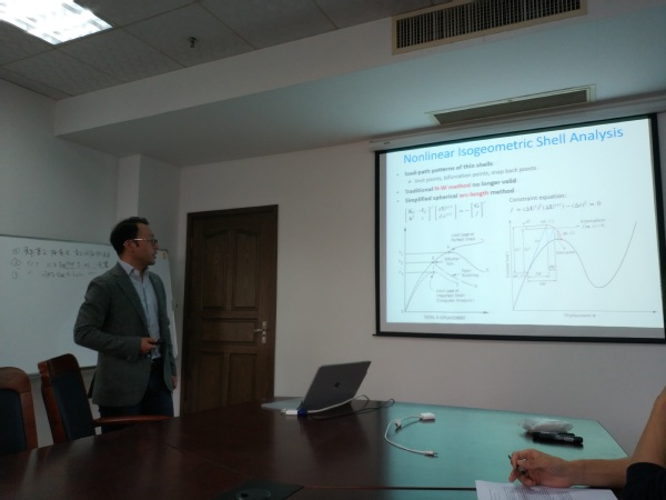 航空学院航空航天交叉研究院(IRIAA)郭玉杰副教授于10月10日为我校师生做了题为“Isogeometric Stability Analysis of Thin-walled Structures”的学术报告。报告介绍了基于等几何方法的薄壳稳定性问题。报告结束后,郭玉杰与在场的师生就相关领域的研究进行了交流和讨论。王立峰教授主持了报告会。