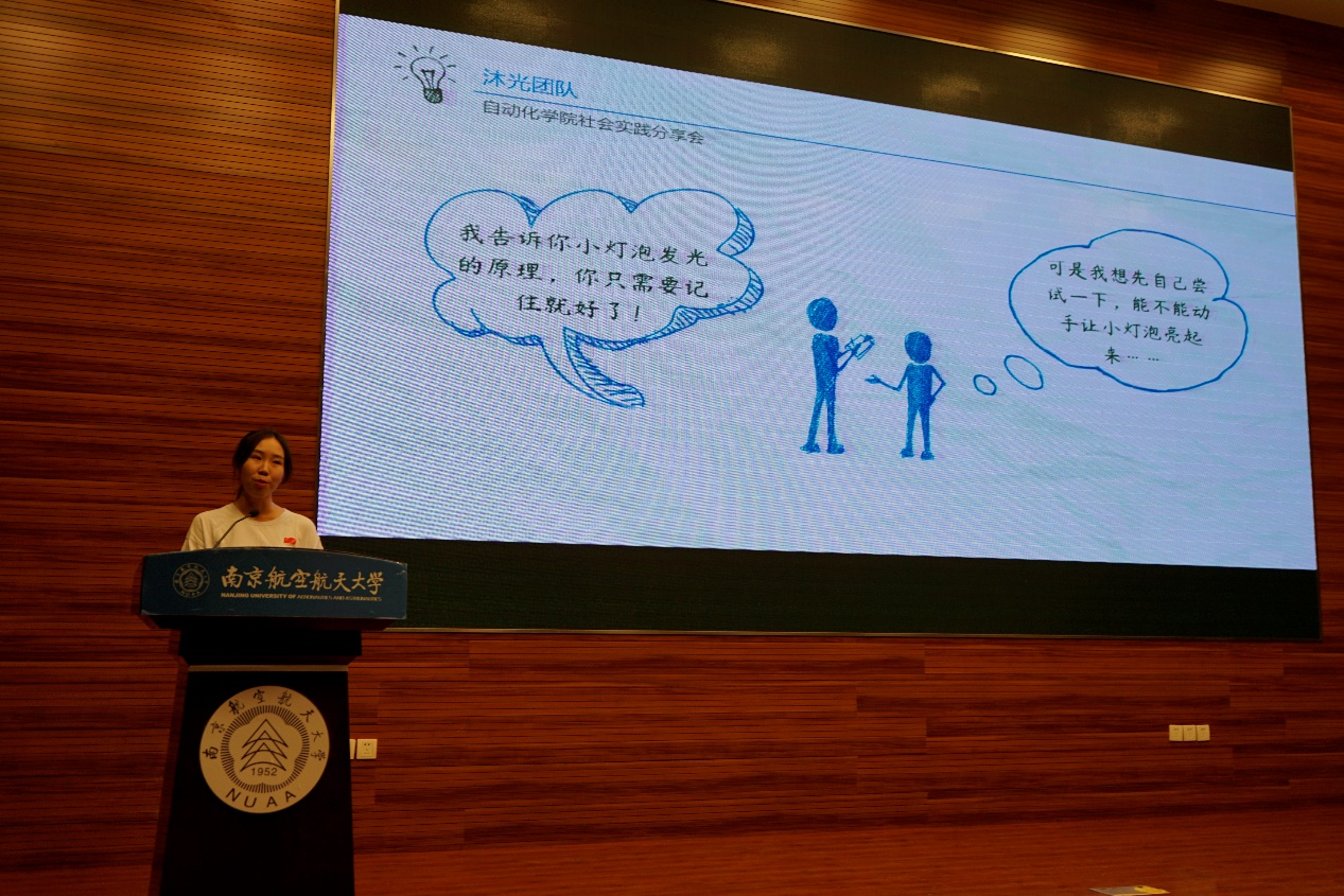 9月27日晚7点,自动化学院在将军路校区一号楼四楼报告厅成功举办“梦想公开课”暨自动化学院2019年暑期社会实践分享会。校团委副书记赵铮、校团委老师吕晶淼、自动化学院党委副书记张跃、学院团委书记刘斐文以及学院多名辅导员参加了本次活动。此次活动由学院2019年暑期社会实践优秀团队代表担任分享人,主要面向学院2019级本科新生展开。