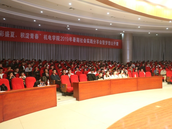 10月9日晚,“吾彩盛夏,积淀青春”机电学院2019年暑期社会实践分享会暨梦想公开课在将军路校区一号楼四楼报告厅成功举办。校团委老师吕晶淼,学院辅导员聂敏敏、余珂欣、代澔丛、于子洋及300余名学生参加了此次活动。