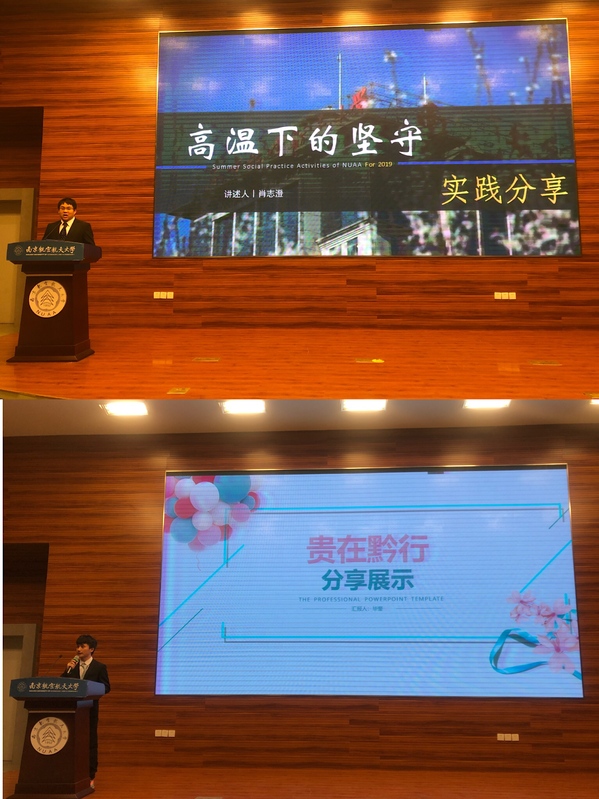 坚守初心,砥砺前行,机电学子聚焦时代发展,让爱国情怀凝神聚力。分享会由视频《反转城市·创造光影》拉开帷幕,“烈火英雄”消防员,“轨道螺丝钉”轨道工人,“新式棒棒军”出租车司机,“山城美食家”烧烤摊主,“沉默风景线”环卫工人……创造光影团队追寻着一天24小时的脚步,从最普通的岗位中发现生命的平凡之美。“高温下的坚守”团队采访环卫工人、建筑工人、交警和外卖小哥的故事,探寻平凡中的坚守。“贵在黔行·心系扶贫”团队聚焦国家精准扶贫政策,走进贵州遵义进化镇大堰村,探寻小村落的扶贫故事。